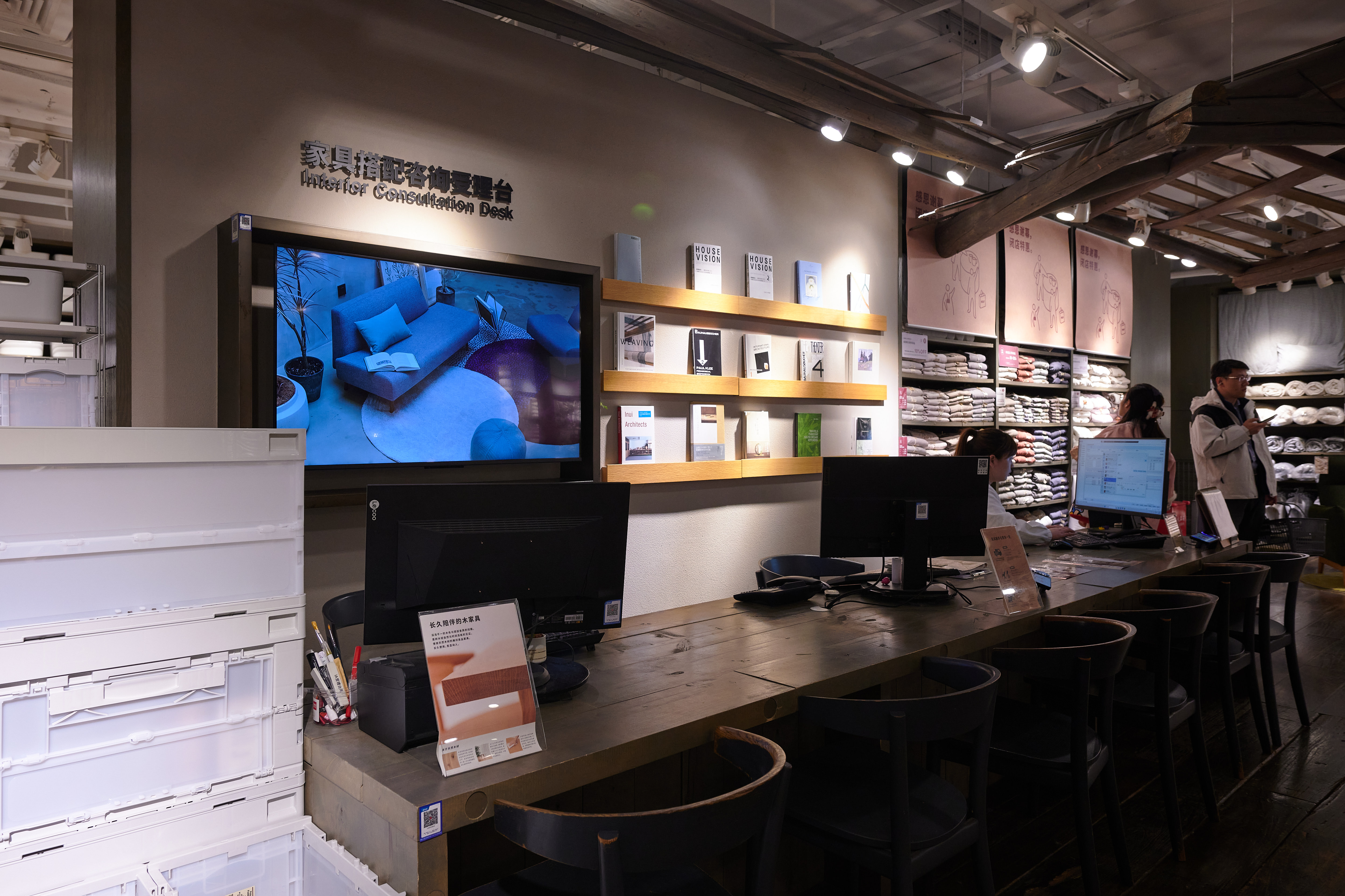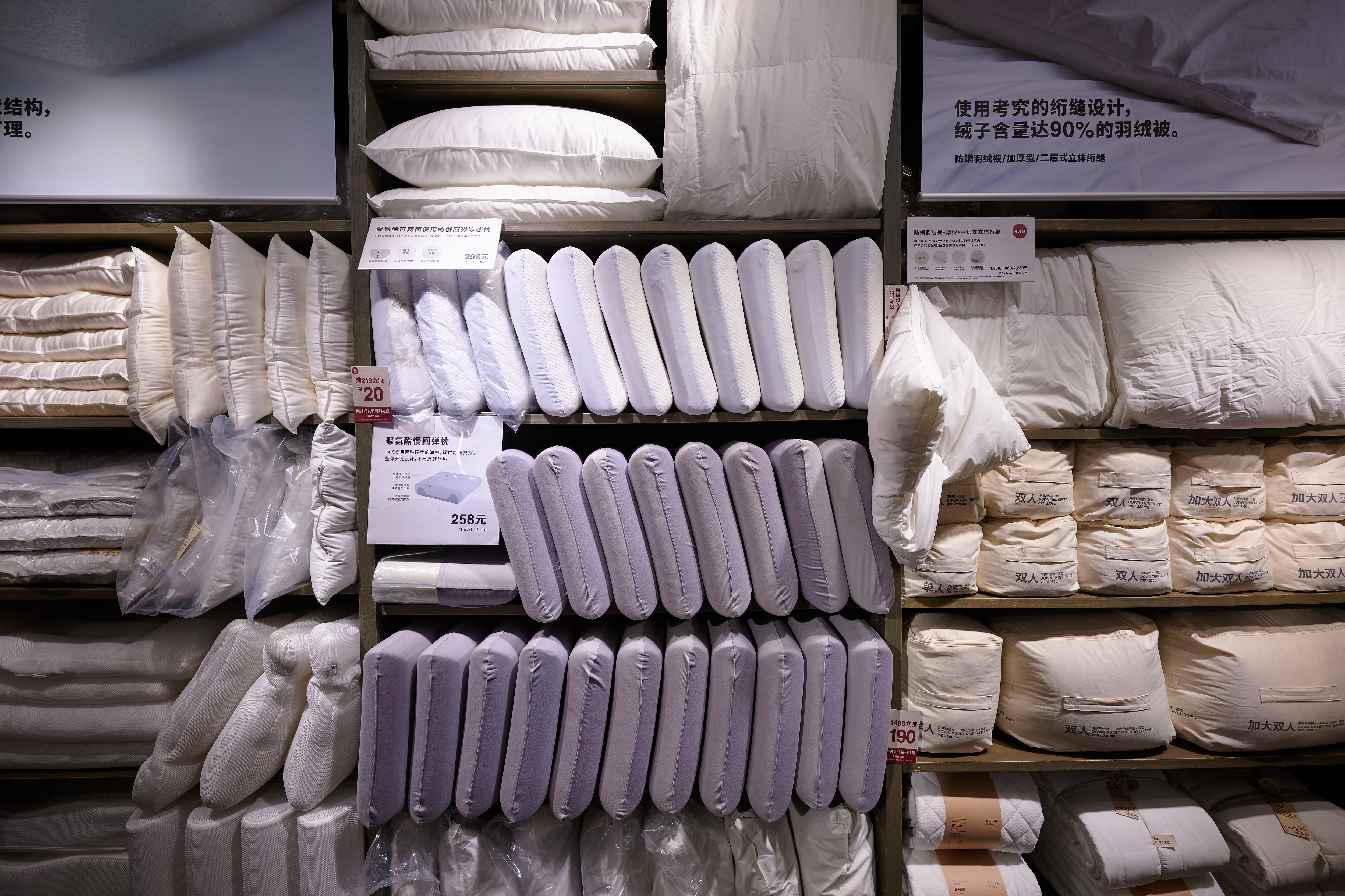 MUJI has a designated home goods and furniture desk, where you can get consultations on interior design, schedule home deliveries, and more. Also, I can attest to the quality of MUJI's bed sheets and pillows – very soft, very chic. The prices for simple bed sheet sets range from about 400 to 800 yuan, which isn't too bad considering you're getting quite a nice quality of cotton.
