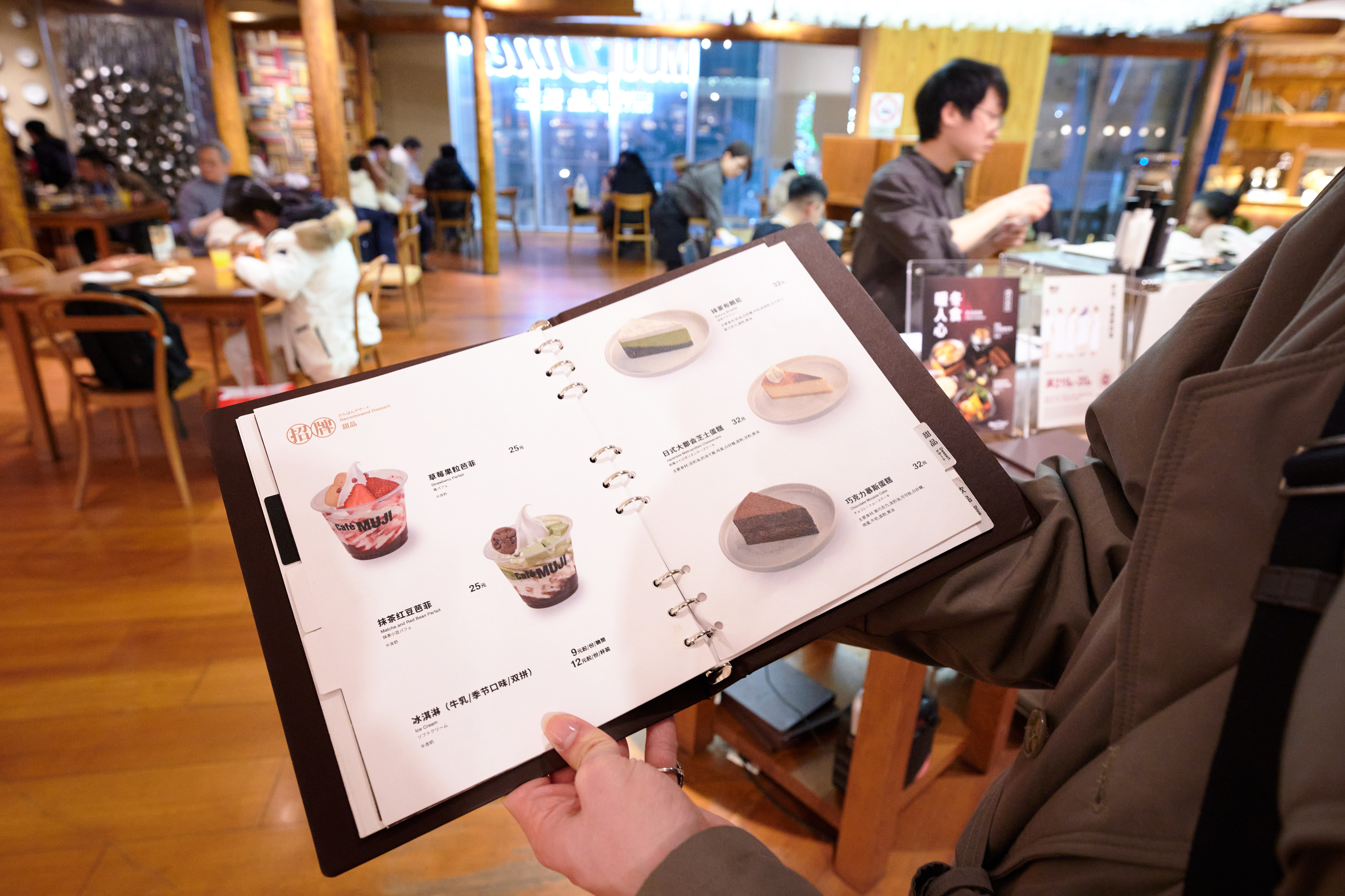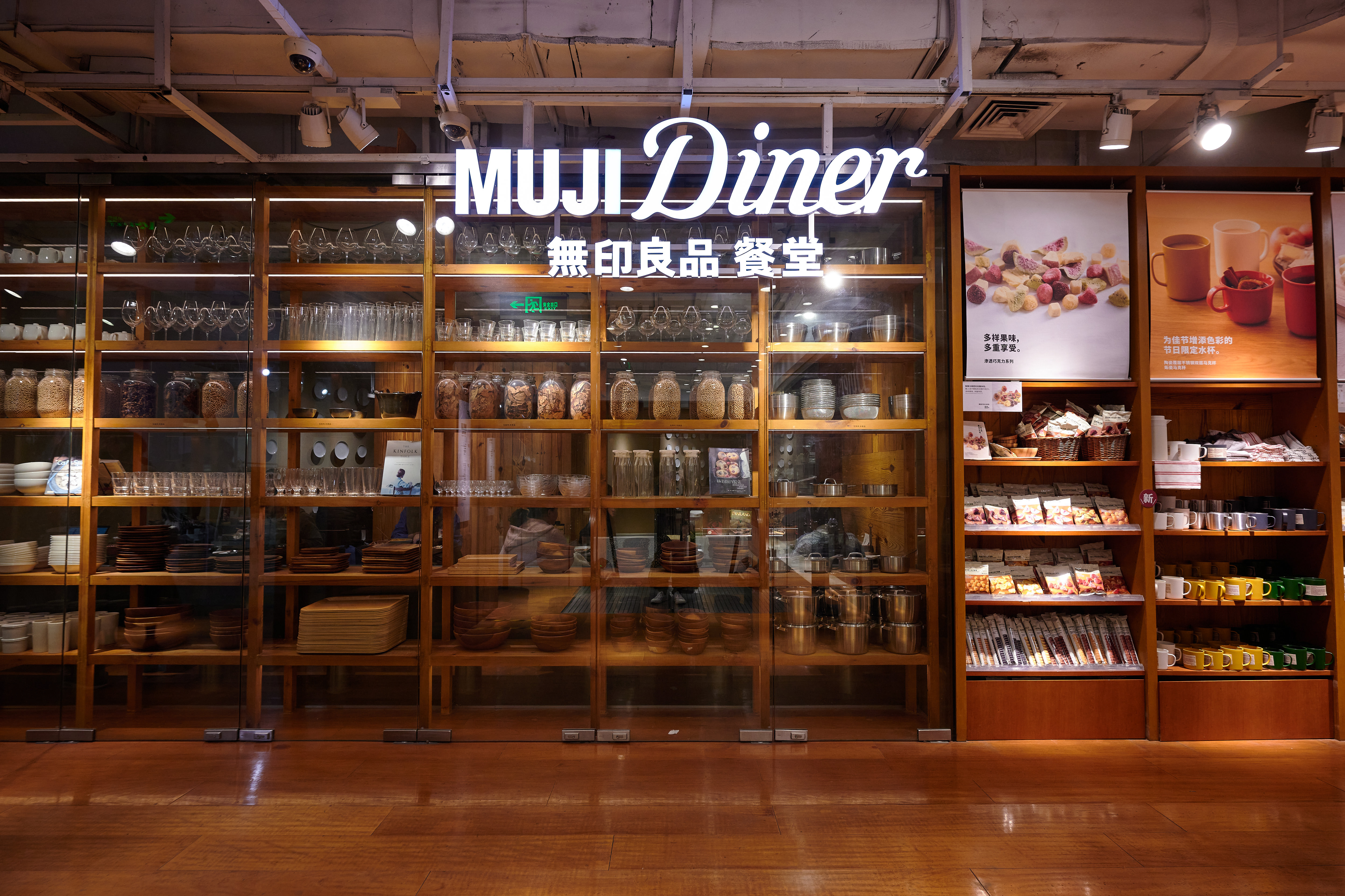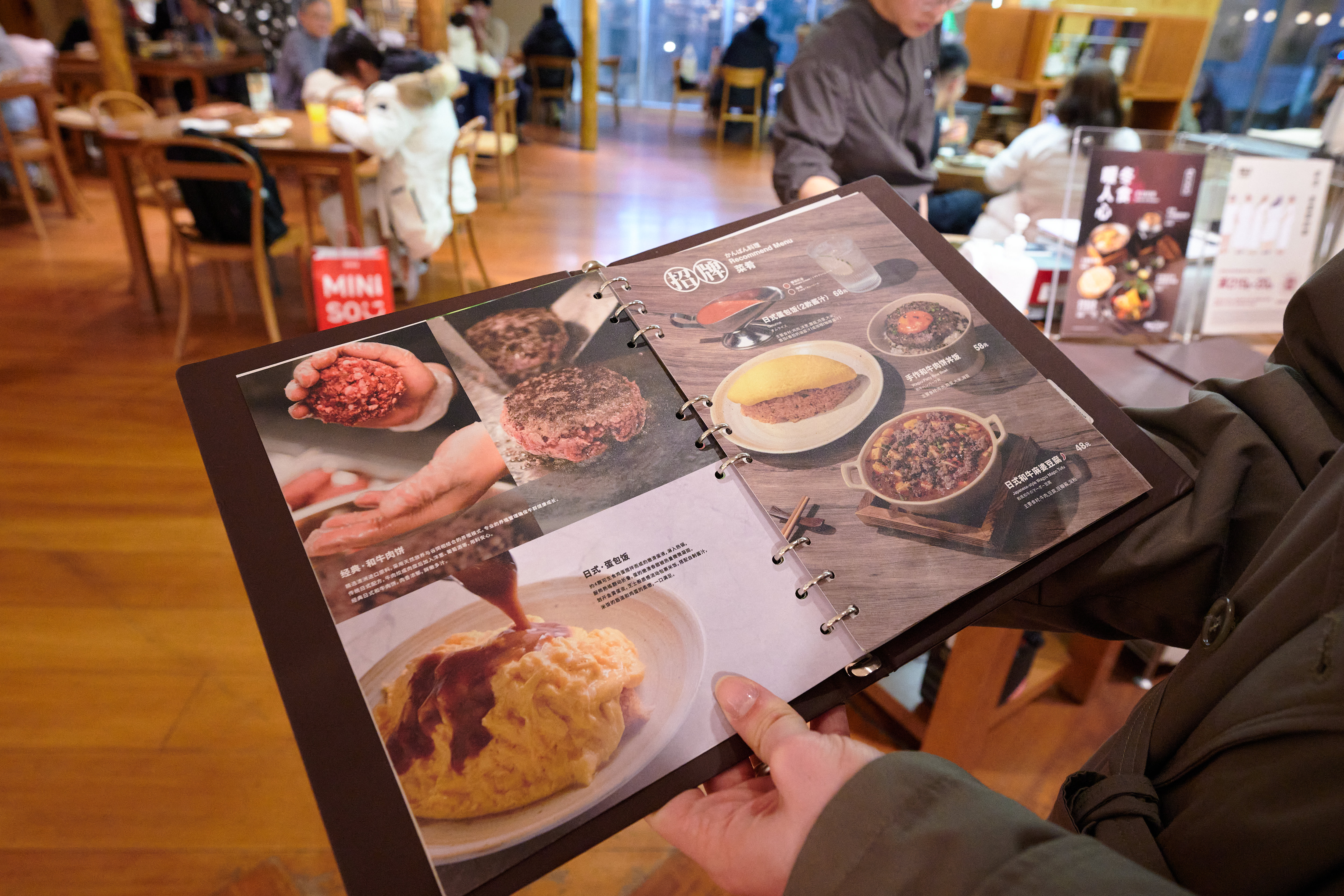 Going up to the third floor, you're greeted by the MUJI Diner. I didn't even know there was such a thing, to be honest. It seems to be an open kitchen concept, where you can actively watch how some of your food is being prepared. The menu is Japanese cuisine-focused, with some extra Western and Chinese dishes sprinkled throughout. The prices are mid-range, ranging from 50 to 80 yuan per dish. And I'm pretty sure they have their own ingredient sourcing, but don't quote me on that. I also saw an Australian sirloin steak there, I'm pretty sure, so who knows. There was also quite a crowd, suggesting that the locals enjoy their offerings. That's where I am about to give you a bunch of recommendations.