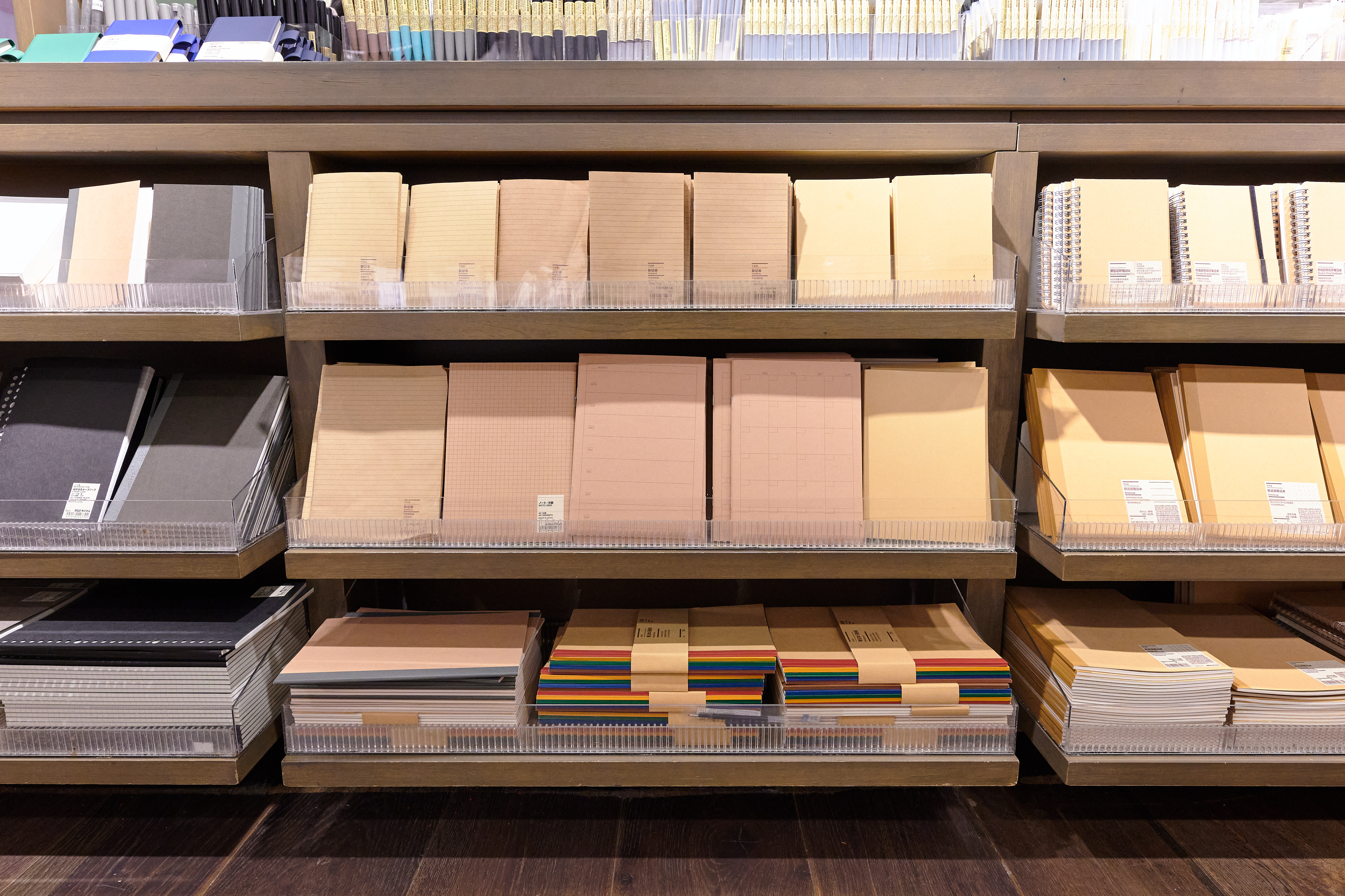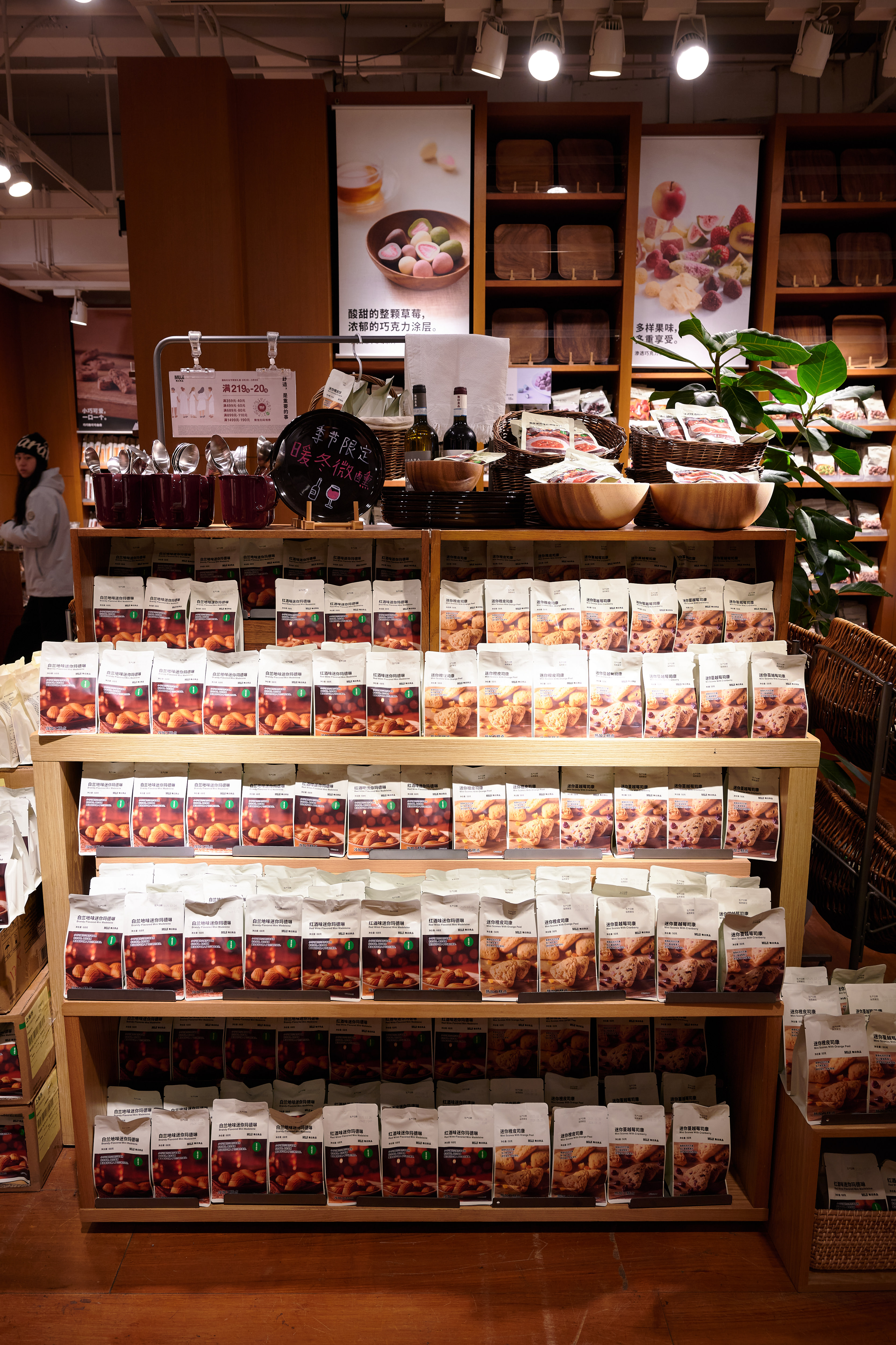 The first floor can be especially overwhelming, as we're navigating through potted plants to skincare to men's underwear. Despite the selection feeling ginormous, I deeply admire MUJI's interior design and vibe setting. Everything feels so clean, so well-organized; the Japanese mindset can truly be felt. On the second floor, you have your office supplies, something MUJI is quite famous for, travel gadgets, and then a whole home goods section. And the last floor is kitchen-focused, with tasty snacks, pre-made sauces, and the MUJI Diner (which I am now discovering).