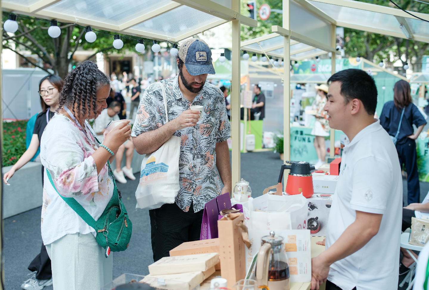 The FUN&IN Tea & Coffee Market illuminated Fengshengli Jing'an Temple Plaza for the 30th Shanghai International Tea Culture Tourism Festival from September 19–21. More than 30 stalls sold tea, coffee, crafts and creative goods until 11pm. Flash mobs, blind-box raffles and a pet-friendly Yongyuan Road sub-venue with live watercolor painting and community projects added urban fun. A themed Suzhou Creek cruise offered tea and city views from the deck.