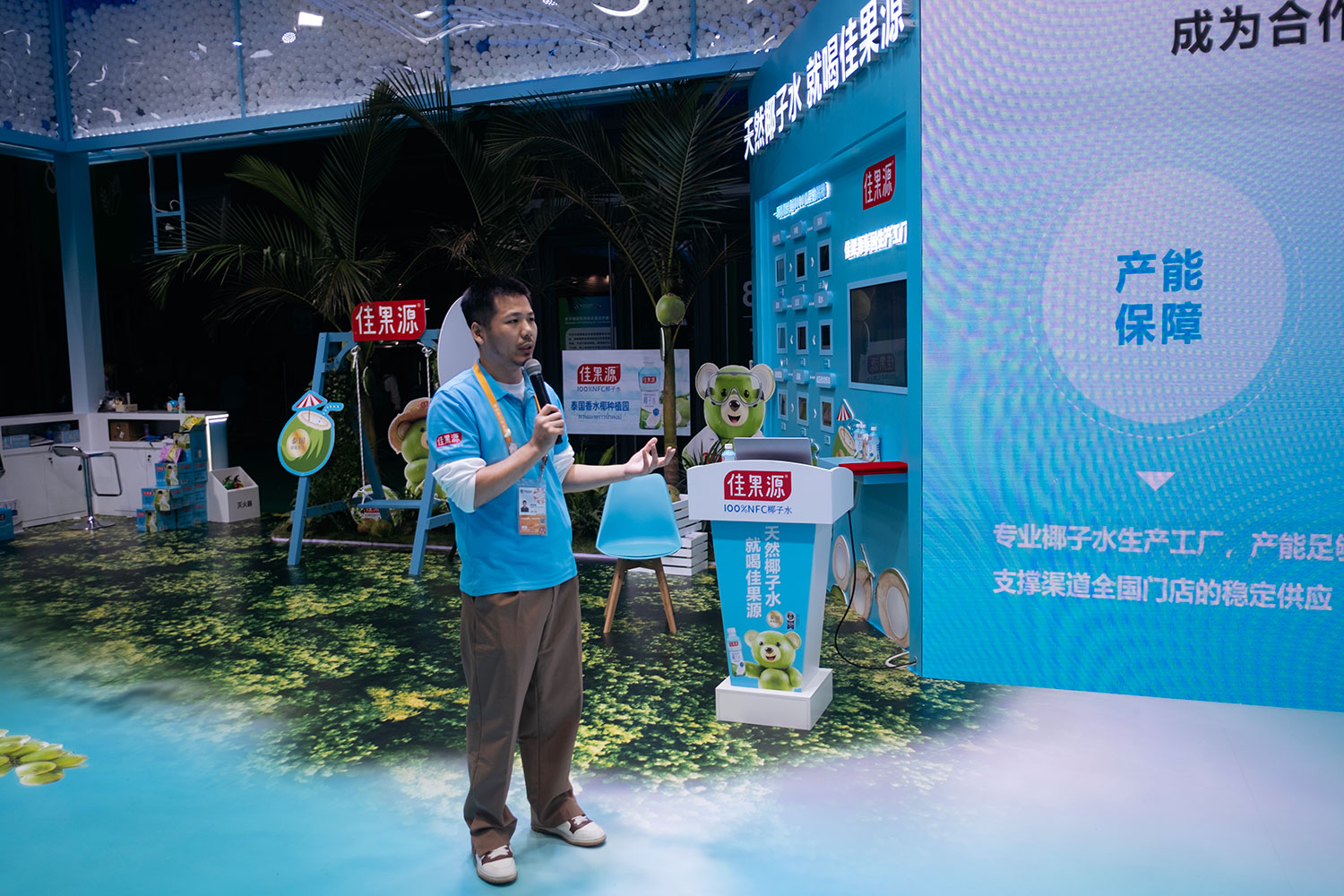 A few booths away, Chinese coconut water brand Delgarden showcased its first “source-based” coconut water factory, which began trial operations this month. Brand manager Zhu Zhizhan said the company invested over 50 million yuan ($7 million) in Thailand for the project.