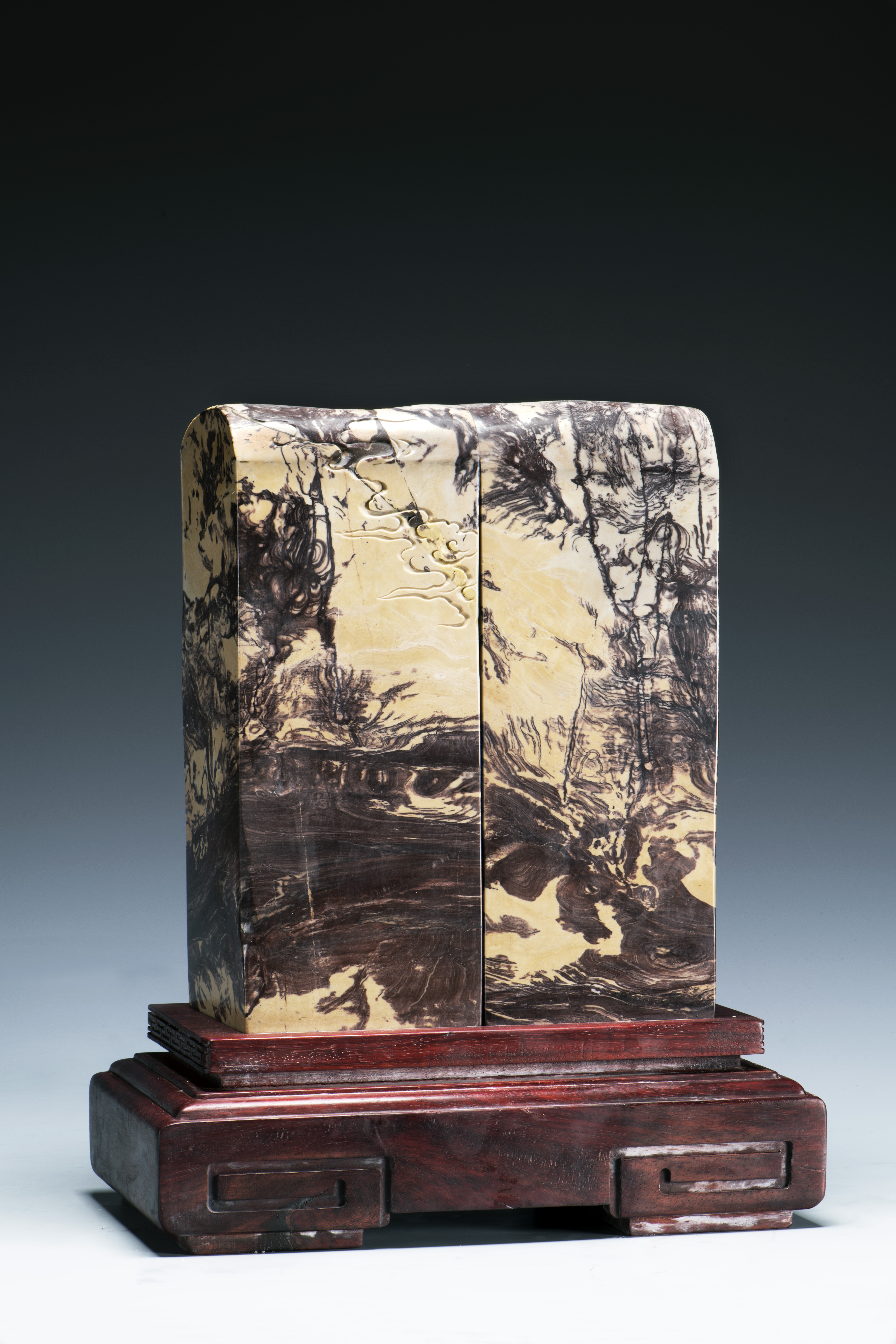 After years of practice and changing aesthetics, Xu has found the simplest work always has the best charm. In "Shadows of Riverbanks," she only carved some cloudy patterns on the surface, but kept the stone's natural veins and textures because they resemble the trees and water waves.