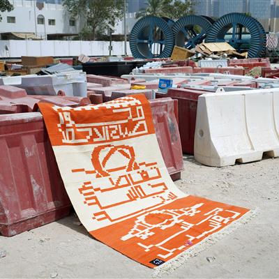 Handwoven textiles by Maryam Al Homaid bridge the gap between lost Arabian Gulf crafts and contemporary digital media and graphics. Her "Doha Highways" series interweaves the names of contemporary infrastructure developments, such as the Sabah Al-Ahmad highway and the Lusail bridge, with digital representations in a typeface that embraces both form and meaning. Her work also emphasizes how the World Cup pushed Qatar to connect its many areas by building new routes from north to south, resulting in increased urbanization.