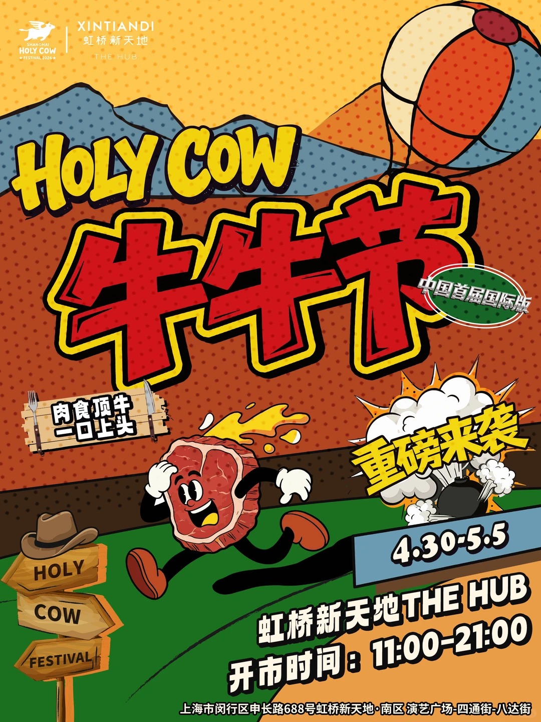 Calling all beef lovers: Shanghai's first Holy Cow Festival is set to bring a full-on outdoor celebration of beef, food, games, and entertainment to the city. The festival will take place at two locations on different dates: Sinar Mars Plaza from April 23 to 26, and Hongqiao Xintiandi from April 30 to May 5.