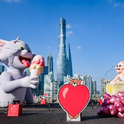 The dreamy riverside terrace becomes a whimsical playground where Tom and Jerry make a stylish appearance. Dressed in romantic flair, the mischievous cartoon duo transforms the 5th-floor rooftop into a must-snap scene with heart-shaped balloons and stunning skyline views.