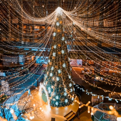 On December 23 to 25, Santa Claus will show up to meet visitors. Meanwhile, a cheerful crowd of costumed characters will parade through the mall with giant puppets in the shape of suns, butterflies and other festive imaginary.