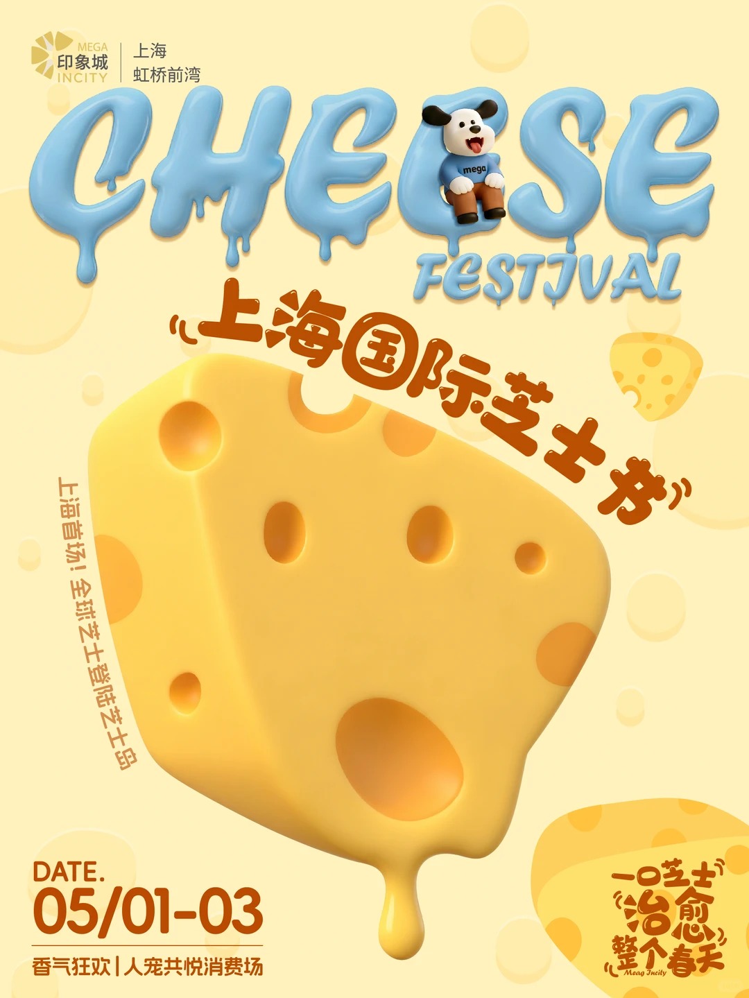 Shanghai's first Cheese Festival will be held from May 1 to 3 at Hongqiao MEGA Shopping Center. Do take the opportunity to join in the fun during the holidays!