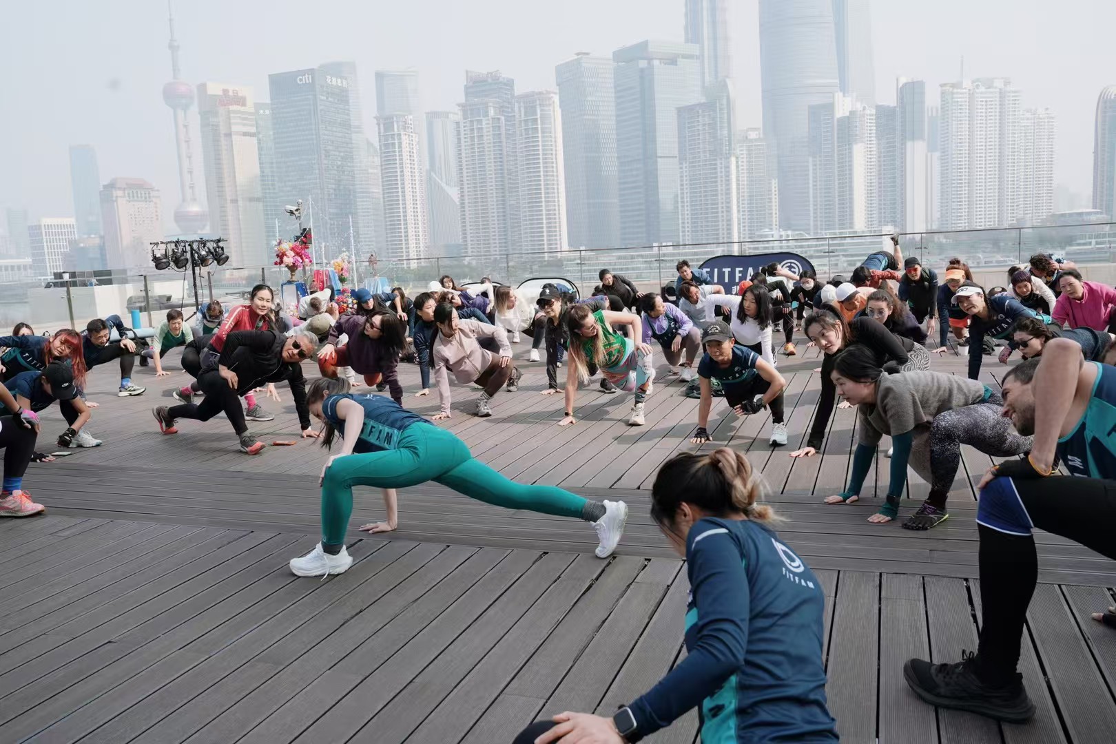 Free fitness community FitFam is hosting a rooftop event near one of Shanghai's iconic landmarks where participants will sweat, connect and celebrate International Women's Day together regardless of their genders.
