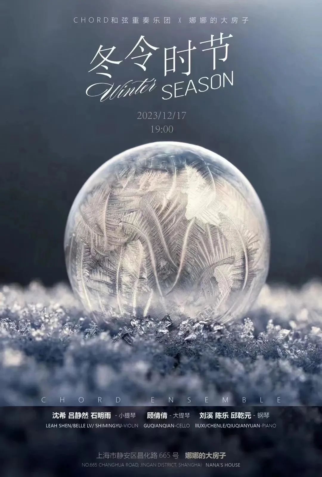 这个冬天,和好友家人一起来到娜娜的大房子,听一场CHORD ENSEMBLE和弦重奏乐团带来的音乐会吧。融合了古典、流行、爵士多风格的音乐演绎,以独家改编的钢琴五重奏形式展现,用音乐为你在这个冬天带来心灵的和谐共鸣。点击上方海报了解详情报名吧。