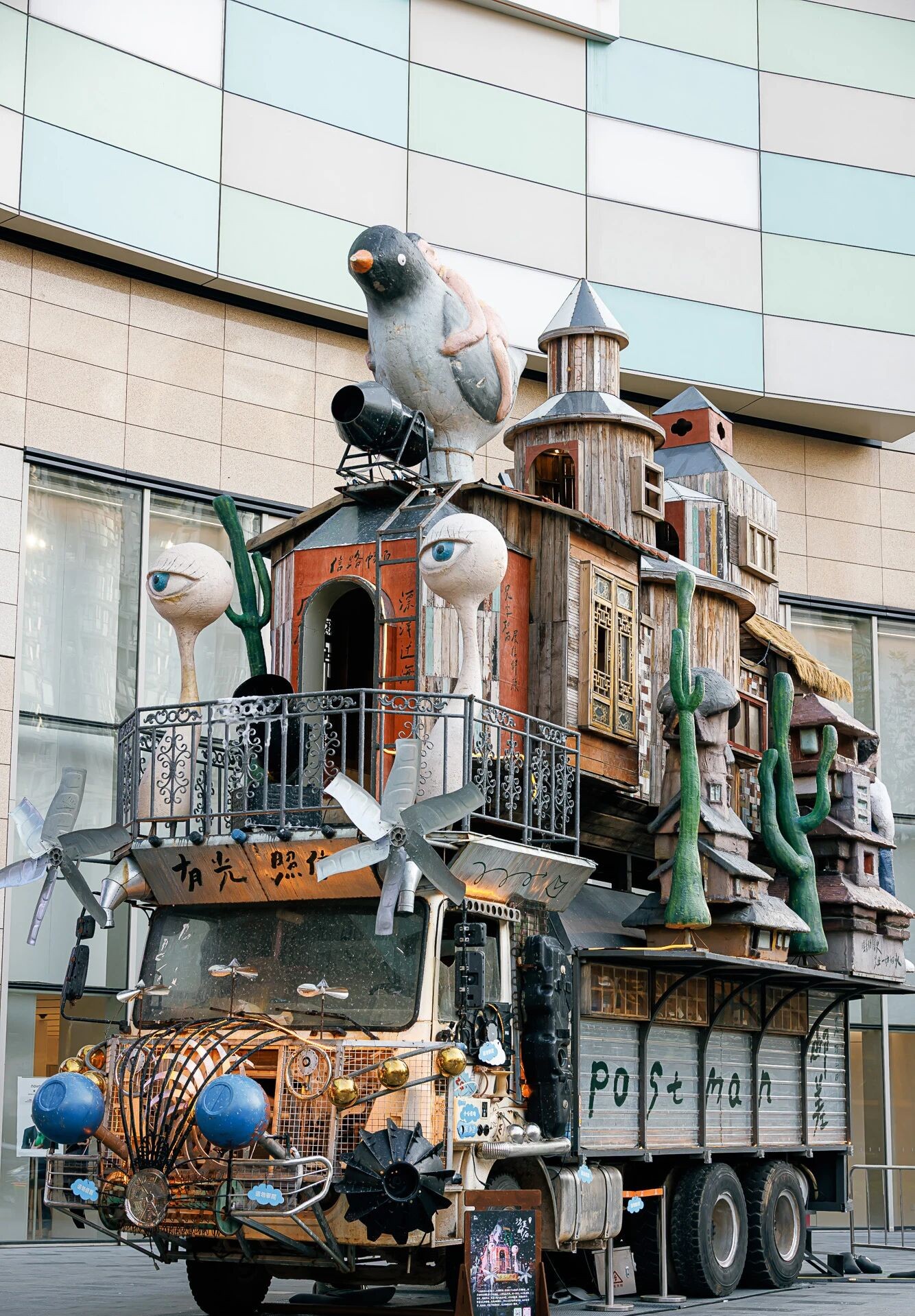 Without any refined design plans, relying solely on intuition and imagination, he used forgotten materials like scrap metal sheets, old tires and broken fans to build "flying" houses, bookstores with slides and vehicles that seemed to have driven straight out of a fantasy movie.