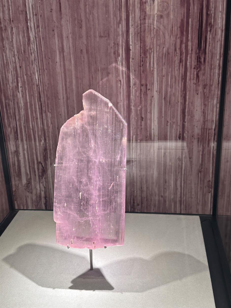 With its soft pink translucency and elongated crystalline form, a kunzite (spodumene) specimen from Afghanistan initially reads as delicate and ornamental. However, it is presented as a source material: spodumene is a primary ore of lithium, linking the crystal’s fragile beauty to lithium-ion batteries that underpin contemporary energy and storage technologies.