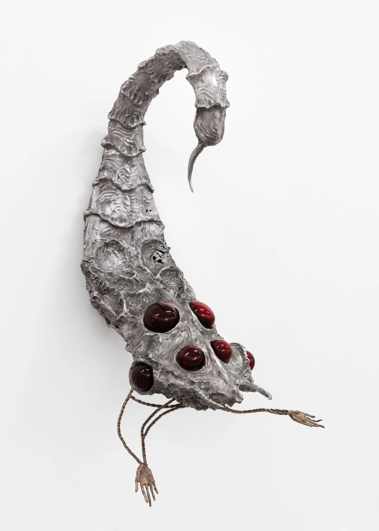 Using aluminum, bronze and blown glass, his sculptures emerge as if from a constantly metamorphosing world. They inhabit the space between plant and mineral, human and animal, earthly and celestial. Every form seems to breathe, awakened by the slow, lingering memory of the elements.